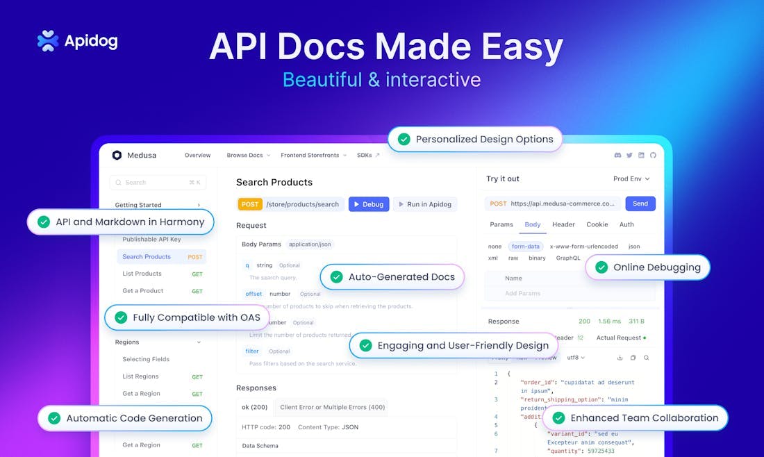 - API Design and Debugging:ย Apidog offers a powerful visual editor that simplifies the design and debugging of APIs, enabling seamless development and testing in one integrated environment