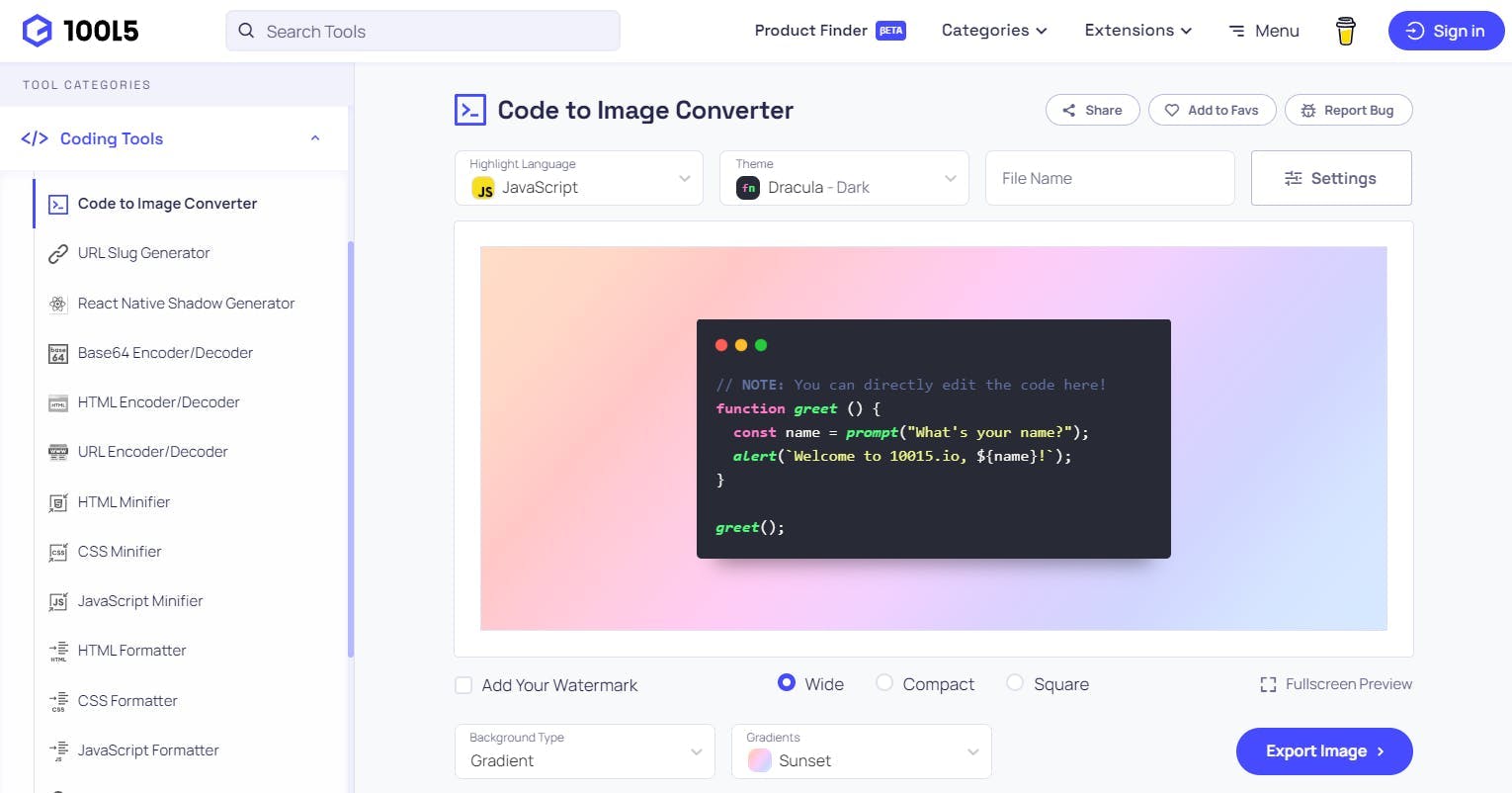 10015.io is a collection of online tools for developers and designers, offering a variety of utilities like HTML/CSS generators, image editors, and JSON converters. It’s designed to simplify everyday tasks without requiring software installation.