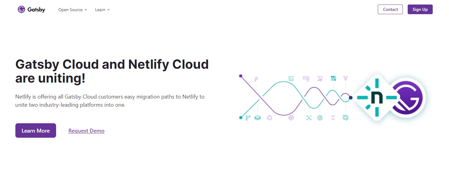 Gatsby is a React-based open-source framework with performance, scalability, and security built-in.